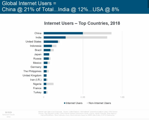 北京时间6月12日凌晨,有“互联网女皇”之称的玛丽·米克尔发布了2019年的互联网趋势报告,这也是她第24年公布互联网报告。